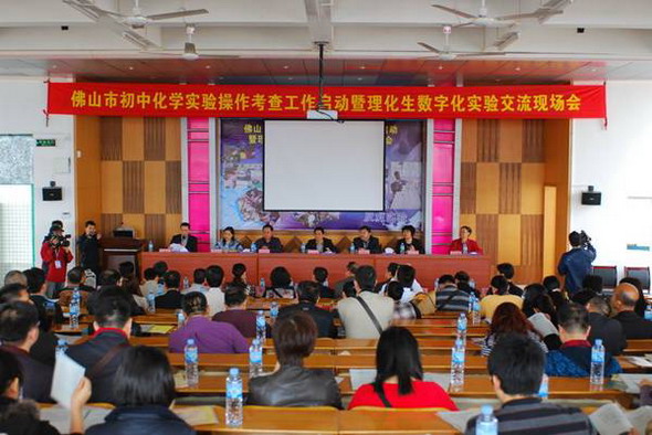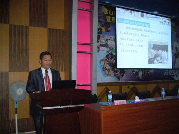 会上南海区博雅学校校长张新彬、高明区教育科研培训中心信息技术部主任黎洪分别作了实验操作考查经验介绍。市教育局教研室研训部主任、中学化学教研员张海洋就初中化学实验操作考查试题及评分标准的解读进行了专业化培训。