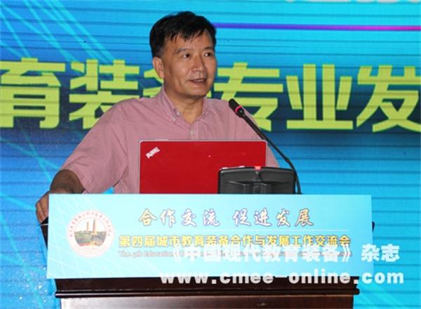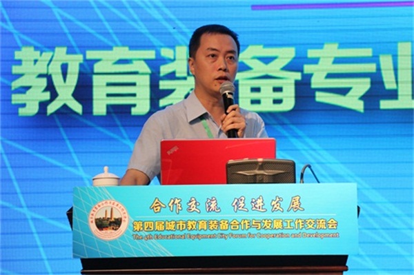 图三、佛山市教育局电教站负责人(副站长)区建峰作题为《STEM理念融合与教育装备创新发展》的主题报告