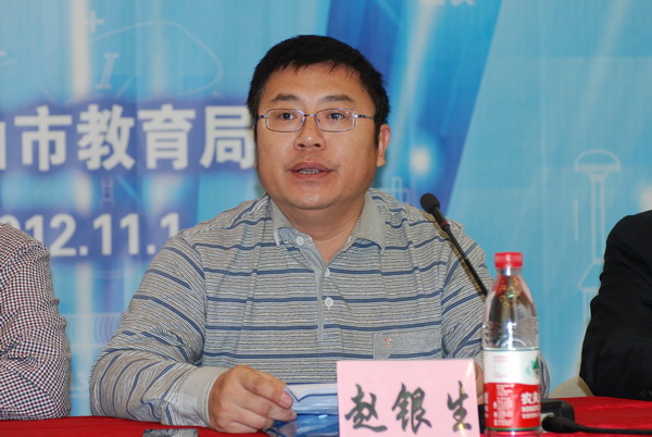 会议分为工作启动会和现场观摩两部分。市实验操作考查工作领导小组副组长、市教育局副局长赵银生出席了会议,并以“借实验考查东风,探科学实践新路”为题作了重要讲话。赵副局长充分肯定了上半年我市开展生物实验操作考查工作的成效,同时针对各初级中学间学生实验操作水平参差不齐,监考评分员实验教学能力有待提升的情况,提出了进一步的工作要求。他要求各单位一是以培养实验操作能力为基础,努力提高学生们的科学与技术素养;二是以监考评分员培训为抓手,大力提高教师实验操作与创新实践能力;三是以开展考点学校建设为契机,积极推进实验室装备的标准化和特色化建设。