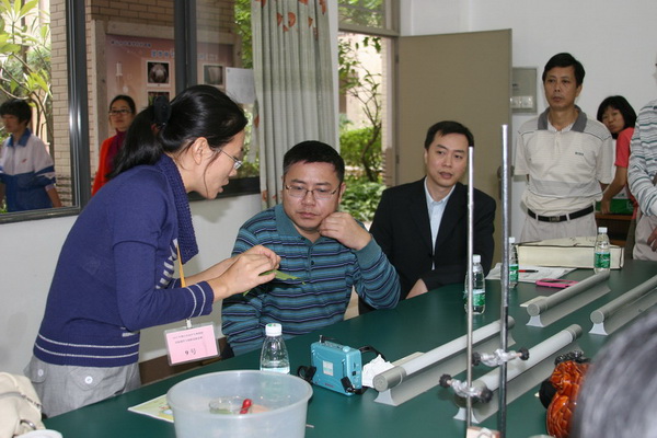 由各区和市直学校选拔推荐的18名初中生物教师代表参加了竞赛。竞赛分为常规实验操作竞赛与创新实验方法竞赛两部分进行。其中,常规实验操作竞赛先由选手抽签决定出场顺序和实验题目,在限定的时间内排除预设的干扰因素,完成实验操作并正确填写实验报告,考验选手们日常实验操作的规范和熟练程度;创新实验方法竞赛由选手在规定时间内演示并解说本人创新的适用于初中生物新课改的演示实验、探究实验和课外实践等实验方法,要求比原来的实验方法效益更高,效果更好、更明显,考验选手的学科专业创新技能。来自市教育局教研室、省市有关高校及我市部分初中生物实验骨干教师组成的五人评委组,通过认真细致的评分合议,分别评出本次大赛的一、二、三等奖及创新实验奖,并进一步推选出代表我市参加省级初中生物实验教师(管理员)操作与创新技能竞赛的参赛人选。