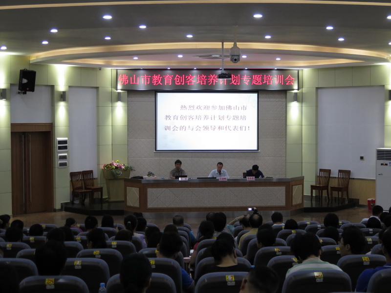 7月16日,best365官网登录入口_365bet官方网投_英国365网站正规吗教育局在best365官网登录入口_365bet官方网投_英国365网站正规吗惠景中学举办best365官网登录入口_365bet官方网投_英国365网站正规吗教育创客培养计划专题培训会。市教育局副局长杨汉波会见了授课的北师大创客教育专家,就下一步推动创客创新教育进行了交流。市、区教育装备部门负责人、市教育装备类应用研究项目负责人及教育创客培养计划入选对象及各相关STEAM教育(科学、技术、工程、艺术、数学)学科教师代表合共约300多人参加了培训会。