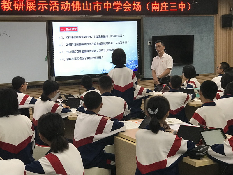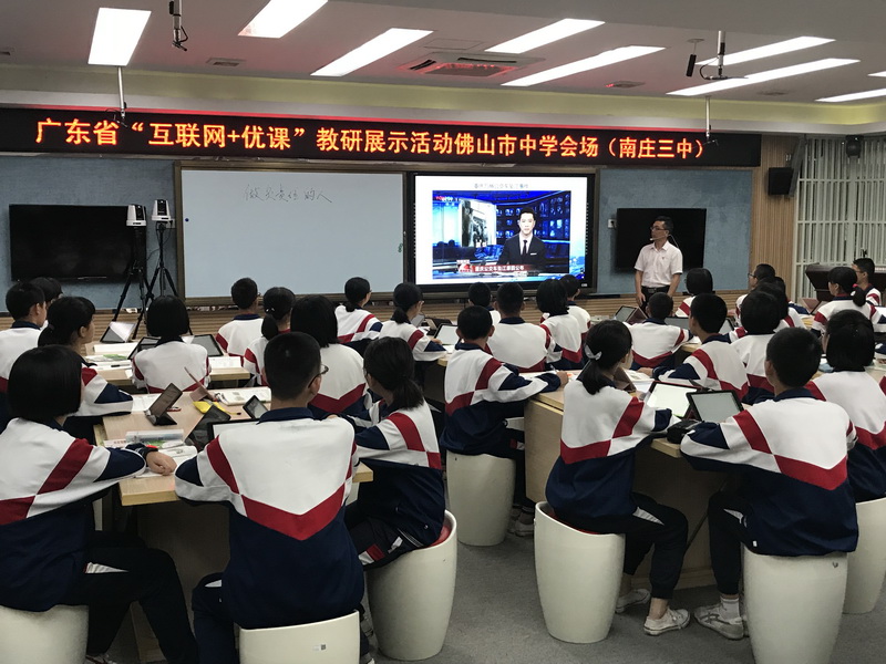 11月12日,由广东省教育厅主办的2018年广东省“互联网+优课”教研展示活动分别在佛山、中山、潮州、云浮等四个地级市8个分会场同步举行。其中,我市对口云浮市,承办了小学数学和初中道德与法治两个学科的优课教研展示活动,分别由best365官网登录入口_365bet官方网投_英国365网站正规吗禅城区南庄中心小学和佛山科技学院附属学校(南庄三中)两所学校协办。广东省教育厅教育技术中心副主任许力,best365官网登录入口_365bet官方网投_英国365网站正规吗教育局信息网络中心岑健林主任、市教研室钱运涛副主任,以及禅城区骨干教师代表共150多人参与现场观摩与交流研讨活动。