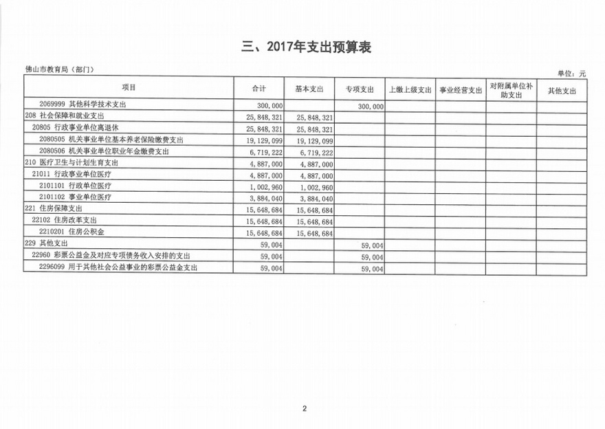 2017 年一般公共预算安排基本支出19,170 万元(详见表六),其中:机关运行经费306万元。