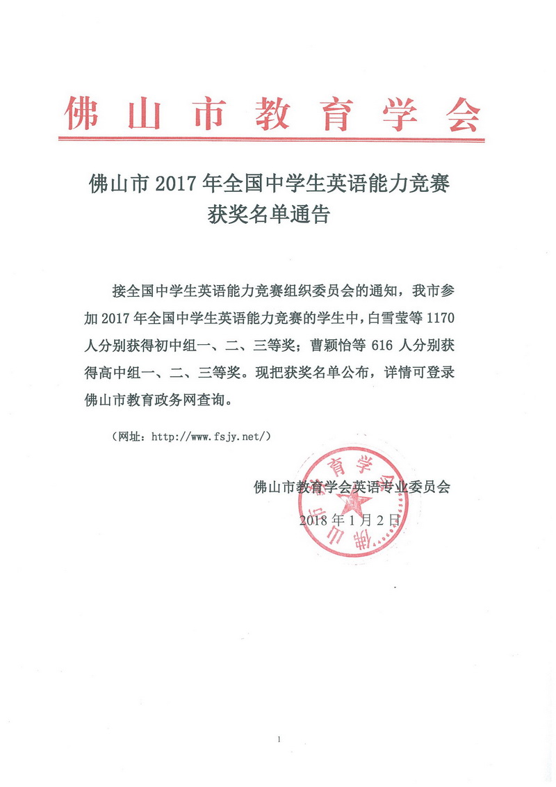 2017年best365官网登录入口_365bet官方网投_英国365网站正规吗全国中学生英语能力竞赛初二年级获奖名单
